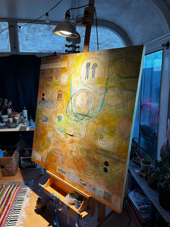 Max Del Bosque's work marries his innate understanding of color with a deep love of layered line and form. Mixed material media and collaged ephemera act as signifiers of daily existence. Incorporating intentionally saved material is visual documentation of the very process of paying attention. Text and language are frequently used to create narrative rhythm. It is always pared down, thoughtfully simplistic—direct stylistic nods to his love of childhood picture books and post-colonial Mexican Ex-voto tradition of paintings.